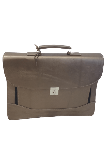 Cartable 100% vrai cuir lise 3 soufflets doré avec garantie