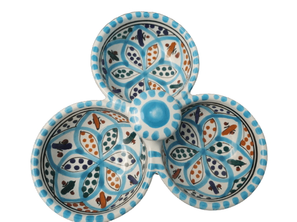 Plateau apéritif 3 coupelles couleur bleu
